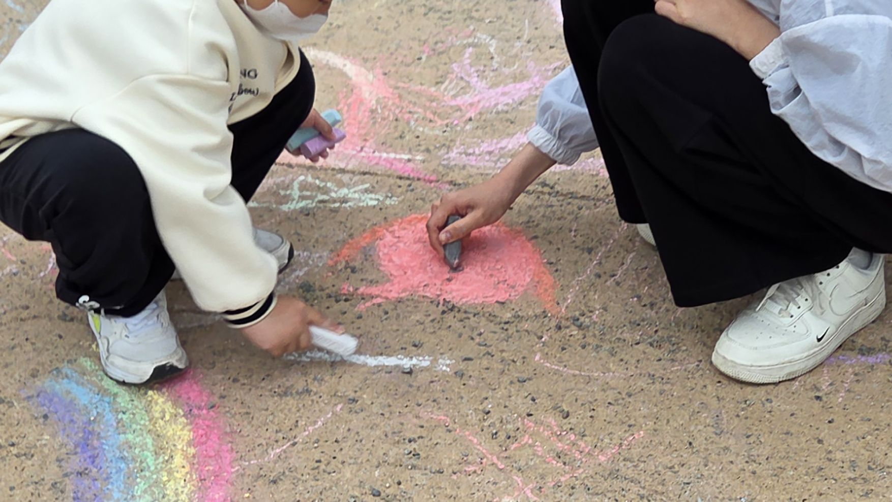 넓은 바닥을 캔버스 삼아 자유롭게 그림을 그려보는 체험